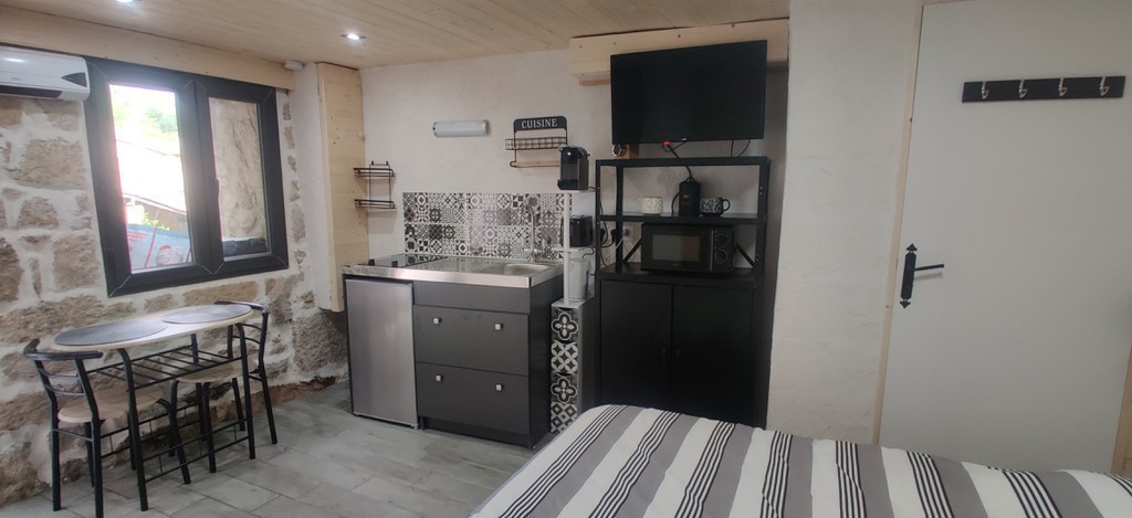 This brand-new studio offers an unparalleled experience, equipped with a private terrace and a Jacuzzi for moments of relaxation. Enjoy an exceptional view of the communal garden, complete with comfortable sun loungers and tables.