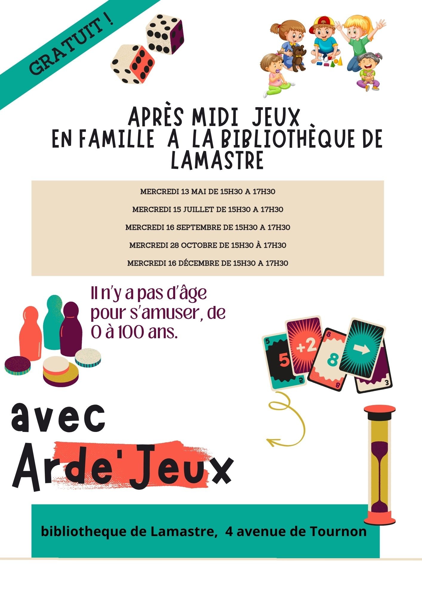 Venez profiter d'un après-midi jeux en famille avec Arde'Jeux. Il n'y a pas d'âge pour s'amuser, de 0 à 100 ans.